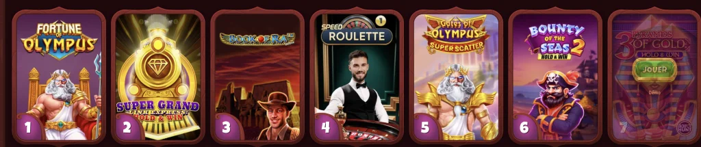 Des jeux populaires comme Starburst (émotions vibrantes), Mega Moolah (jackpot millionnaire) et Gates of Olympus (richesse divine) garantissent un haut niveau de divertissement. Les machines à sous en ligne avec un RTP élevé signifient que votre argent travaille pour vous de manière optimale.